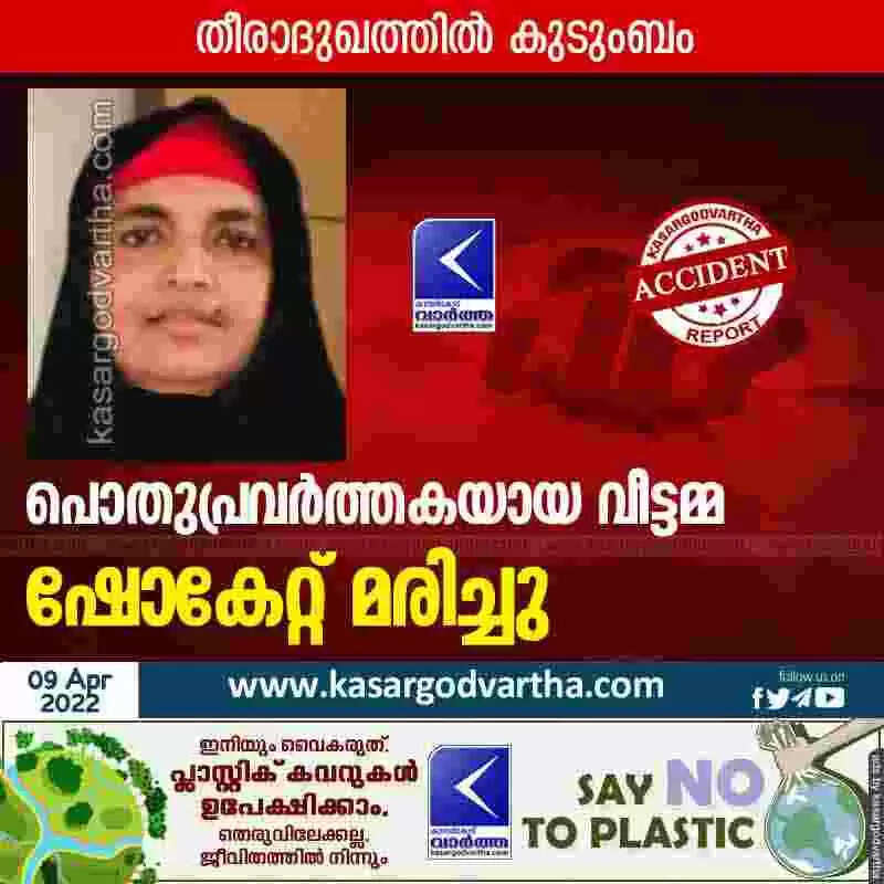 Keywords:  Manjeshwaram, Kasaragod, Kerala, News, Shock, Electricity, Accident, SDPI, Accidental-Death, Death, Masjid, Housewife died by electric Shock.