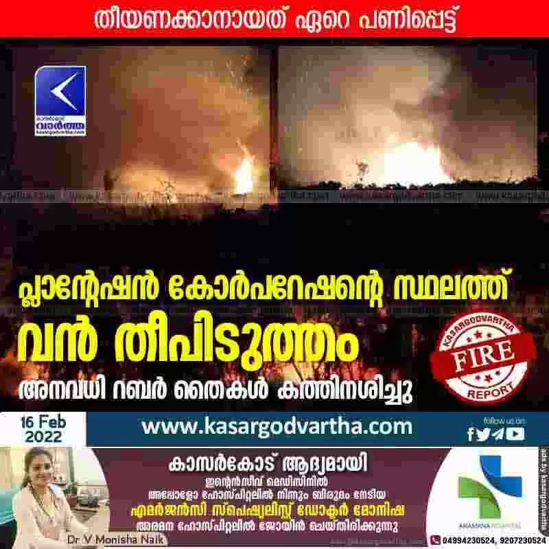 Keywords: Kasaragod, Kerala, News, Bovikanam, Fire, Fire Force, Muliyar, Kuttikol, Huge fire at Plantation Corporation site, Huge Fire, Rubber Plant, Rubber Plant Fire. < !- START disable copy paste -->