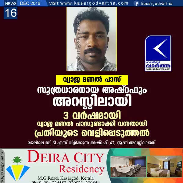 വ്യാജ മണല് പാസ്: സൂത്രധാരനായ അഷ്റഫും അറസ്റ്റിലായി; 3 വര്ഷമായി വ്യാജ മണല് പാസുണ്ടാക്കി വന്നതായി പ്രതിയുടെ വെളിപ്പെടുത്തല്