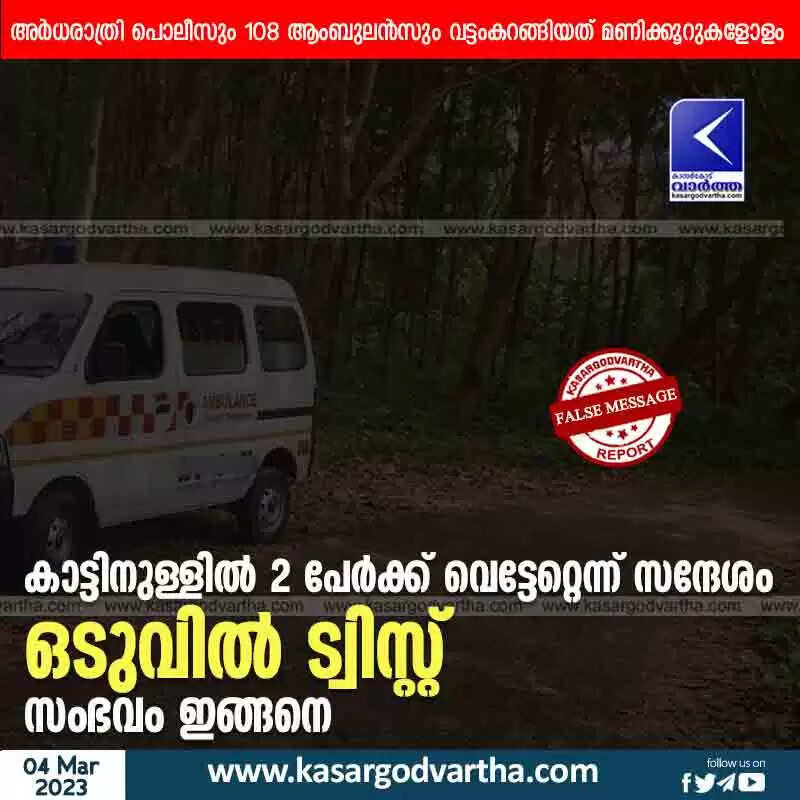False Messages | കാട്ടിനുള്ളില്‍ 2 പേര്‍ക്ക് വെട്ടേറ്റെന്ന് സന്ദേശം; അന്വേഷിച്ചിറങ്ങിയ പൊലീസും 108 ആംബുലന്‍സും വട്ടംകറങ്ങിയത് മണിക്കൂറുകളോളം, ഒടുവില്‍ ട്വിസ്റ്റ്; സംഭവം ഇങ്ങനെ