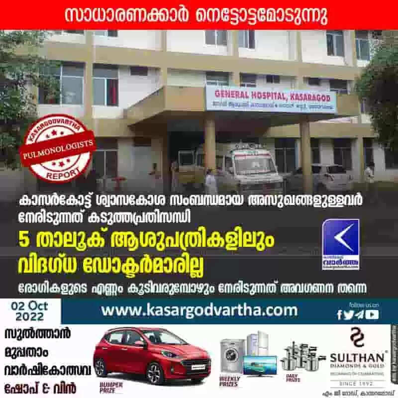 Keywords: Kasaragod: 5 taluk hospitals do not have pulmonologists, Kerala, Kasaragod,Hospital, News,Top-Headlines,Doctors, Patient's.
