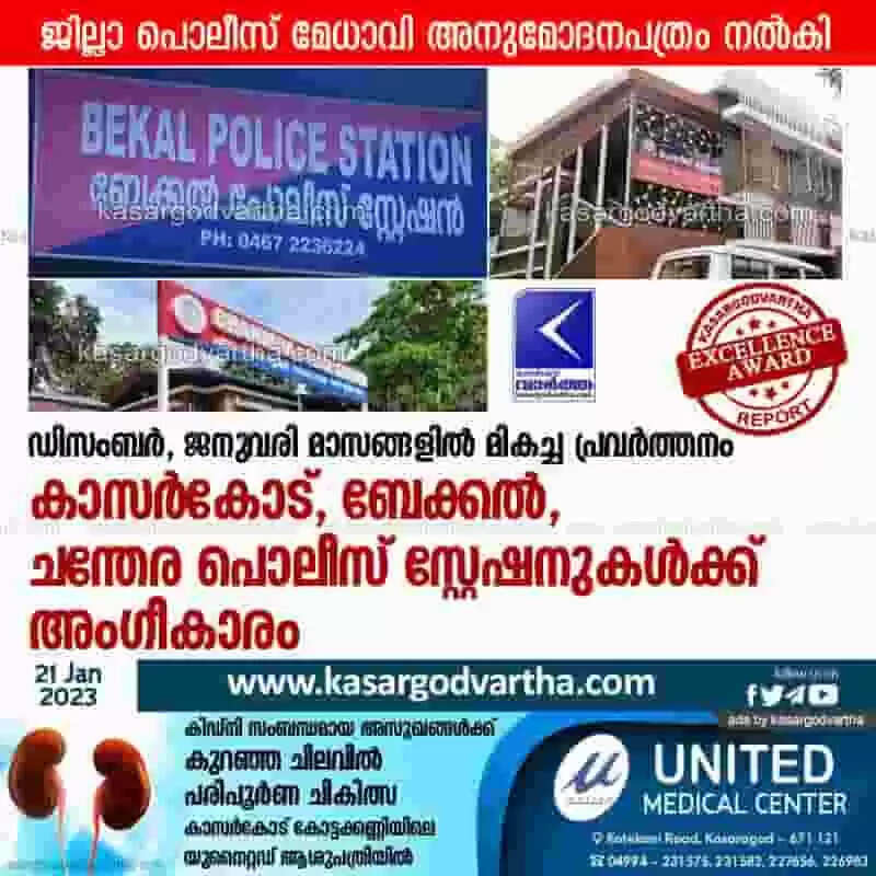 Keywords:  Latest-News, Kerala, Kasaragod, Top-Headlines, Police, Police Station, Award, Kasaragod, Bekal and Chandera Police Stations with excellent performance.