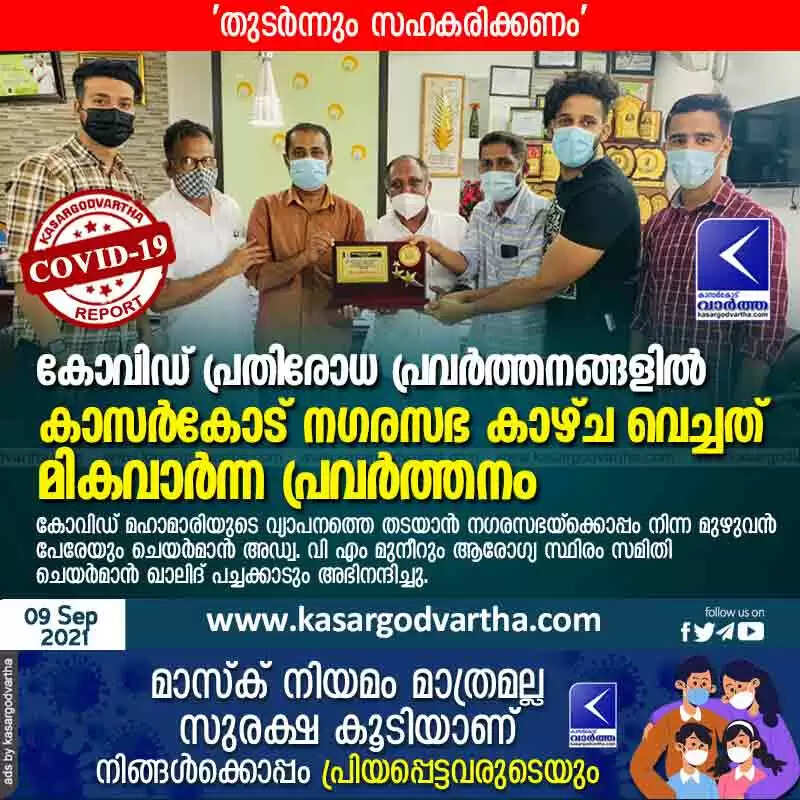 കോവിഡ് പ്രതിരോധ പ്രവർത്തനങ്ങളിൽ കാസർകോട് നഗരസഭ കാഴ്ച വെച്ചത് മികവാർന്ന പ്രവർത്തനം