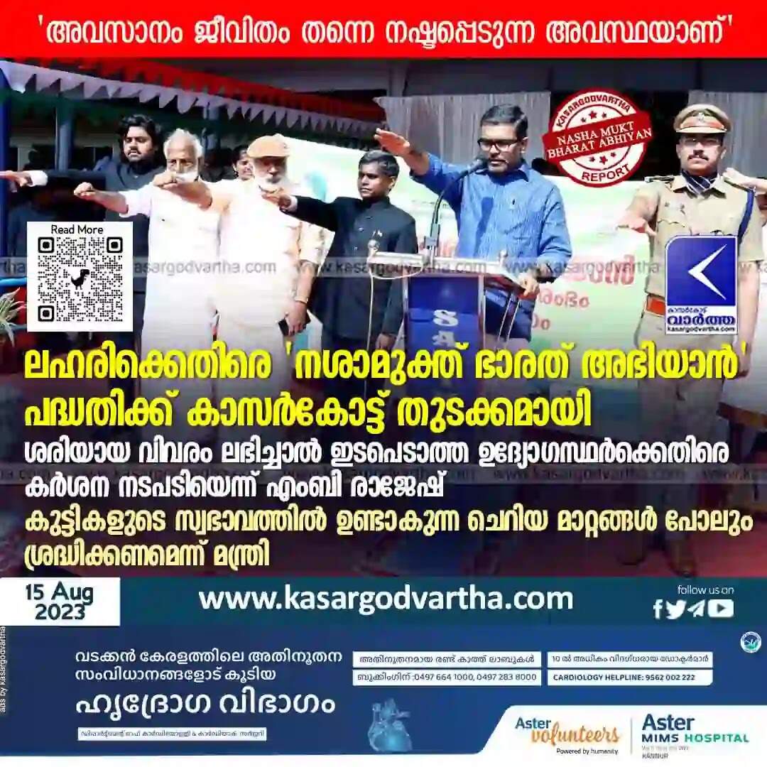 Keywords: M B Rajesh, Nasha Mukt Bharat Abhiyaan, Kerala News, Kasaragod News, Independence Day, Kasaragod: Nasha Mukt Bharat Abhiyaan begins.