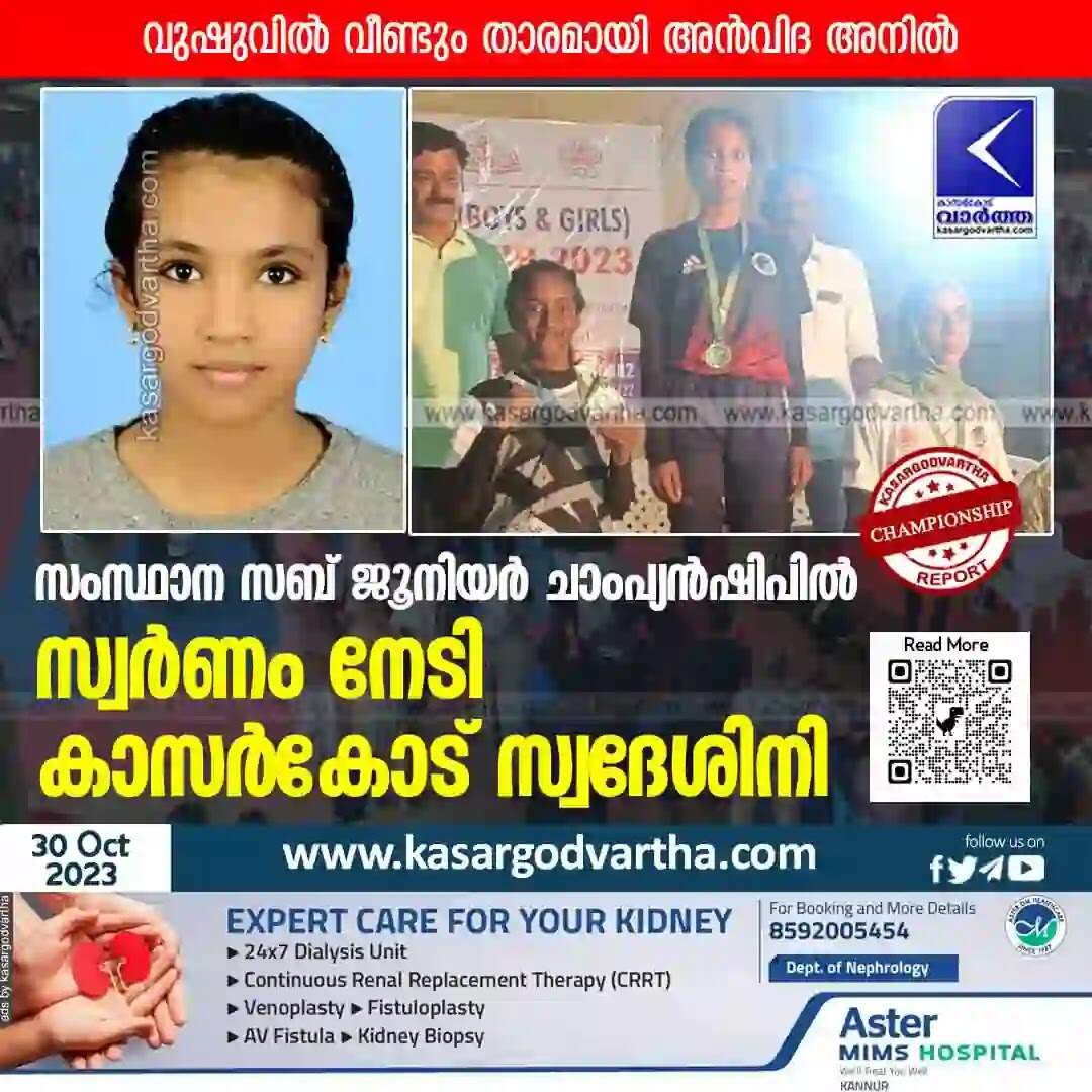 Wushu | വുഷുവില് വീണ്ടും താരമായി അന്വിദ അനില്; സംസ്ഥാന സബ് ജൂനിയര് ചാംപ്യന്ഷിപില് സ്വര്ണം നേടി കാസര്കോട് സ്വദേശിനി