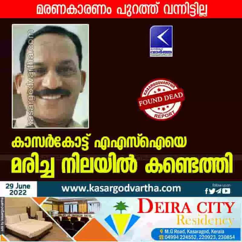 Found Dead | കാസര്‍കോട്ട് എഎസ്‌ഐയെ മരിച്ച നിലയില്‍ കണ്ടെത്തി