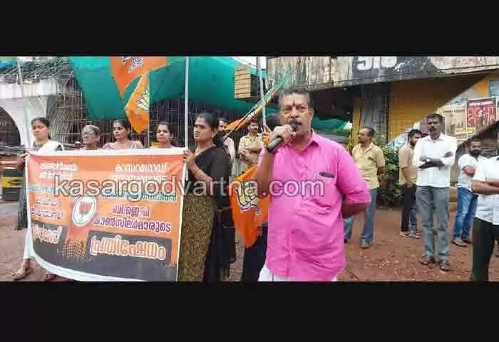 Keywords: News, Kerala, Kerala-News, Kasaragod-News, Top-Headlines, BJP, Municipal Councilors, Protest, Discharge, Sewage, Municipal Shopping Complex, Auto Rikshaw, Merchants, Passengers, Stench, Kasargod: BJP municipal councilors protest against the discharge of sewage from municipal shopping complex.