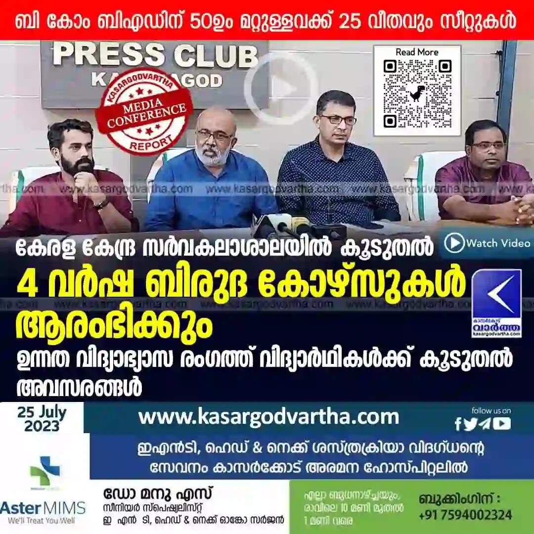 Keywords: Kerala Central University, Degree Programs, Education, Malayalam News, Kerala News, Kasaragod News, Kerala Central University will start more 4-year degree programs.
