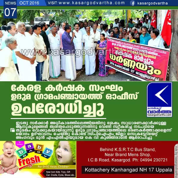 കേരള കര്‍ഷക സംഘം ഉദുമ ഗ്രാമപഞ്ചായത്ത് ഓഫീസ് ഉപരോധിച്ചു