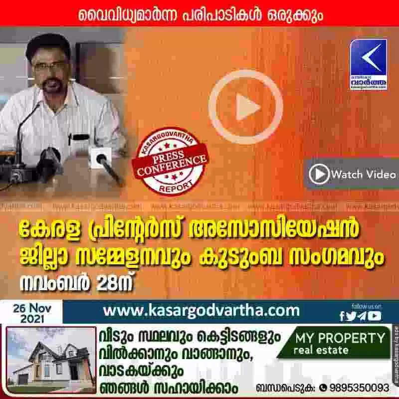 Keywords:  Press meet, Kerala, Kasaragod, District, Meeting, Top-Headlines, Conference, Panchayath, President, Kerala Printers Association District Conference and Family meeting on November 28.