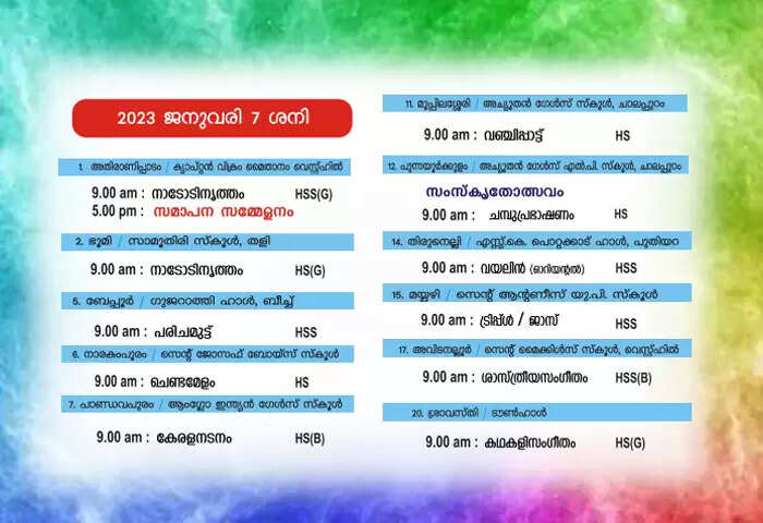 Schedule | സംസ്ഥാന സ്‌കൂൾ കലോത്സവം: വേദികളും മത്സരങ്ങളും ഇങ്ങനെ; വിശദമായറിയാം