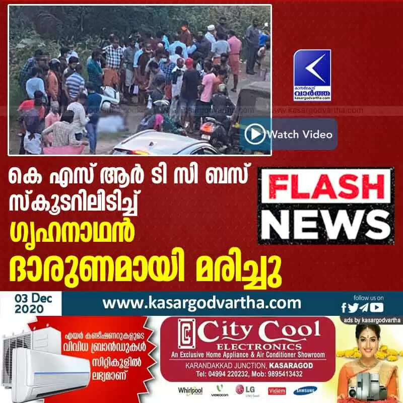 ബേക്കല്‍: (www.kasargodvartha.com 03.12.2020) കെ എസ് ആര്‍ ടി സി ബസ് സ്‌കൂടറിലിടിച്ച് ഗൃഹനാഥന്‍ ദാരുണമായി മരിച്ചു.
