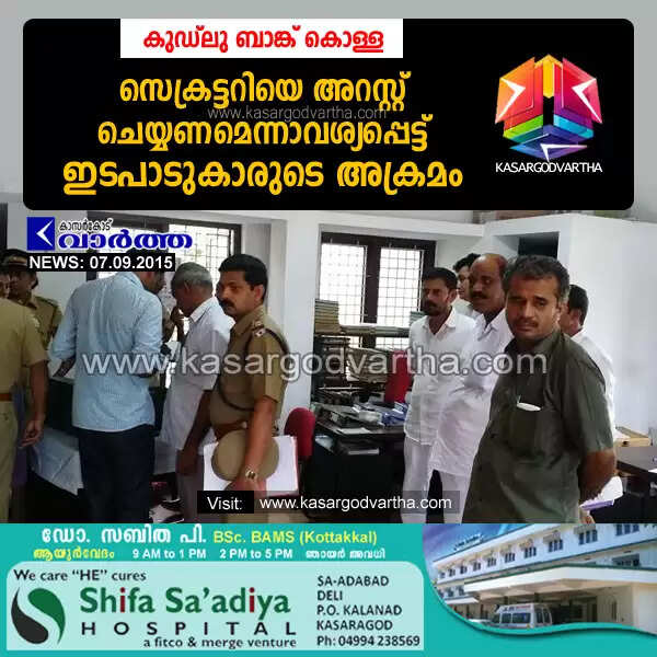 കുഡ്ലു ബാങ്ക് കൊള്ള: സെക്രട്ടറിയെ അറസ്റ്റ് ചെയ്യണമെന്നാവശ്യപ്പെട്ട് ഇടപാടുകാരുടെ അക്രമം