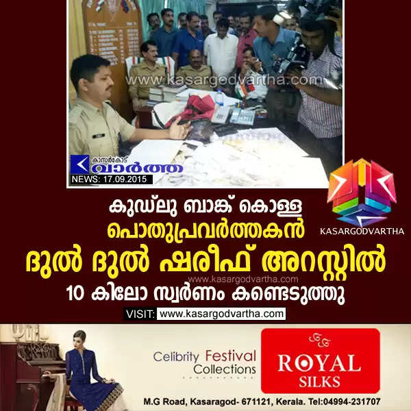 കുഡ്ലു ബാങ്ക് കൊള്ള: പൊതുപ്രവര്ത്തകന് ദുല് ദുല് ഷരീഫ് അറസ്റ്റില്; 10 കിലോ സ്വര്ണം കണ്ടെടുത്തു