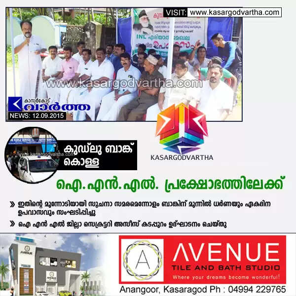 Keywords: Kasaragod, Kerala, Robbery, INL, Dharna, Bank Robbery, Kudlu bank Robbery, Kudlu bank robbery: INL Dharna conducted.