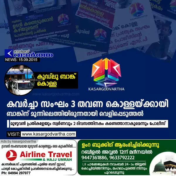 Keywords: Kasaragod, Kerala, Bank, Robbery, Investigation, Police, Kudlu bank robbery: new reveal.
