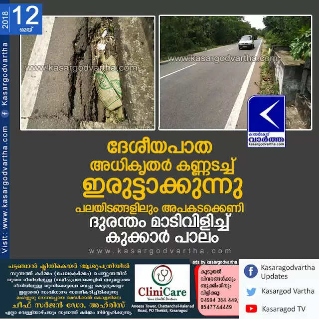 Keywords: Kasaragod, Kerala, News, Road, National highway, Accident, Bridge, Kukkar Bridge in Bad Condition.