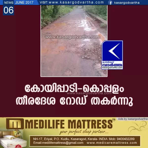 കോയിപ്പാടി-കൊപ്പളം തീരദേശ റോഡ് തകര്‍ന്നു