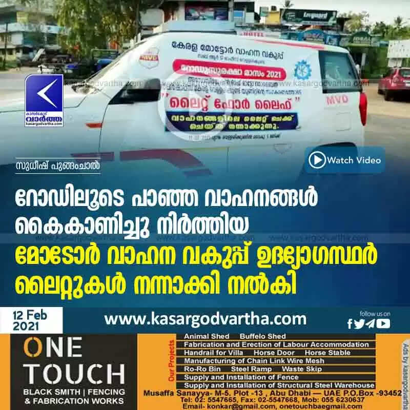 Keywords:  Vellarikundu, Balal, Kanhangad, Kasaragod, Kerala, News, Motor, Vehicle, Lights, Road, ,Top-Headlines, Lights were repaired by the officials of MVD, who stopped the vehicles speeding on the road.