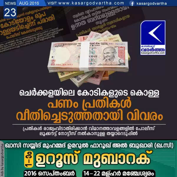 ചെര്‍ക്കളയിലെ കോടികളുടെ കൊള്ള: പണം പ്രതികള്‍ വീതിച്ചെടുത്തതായി വിവരം