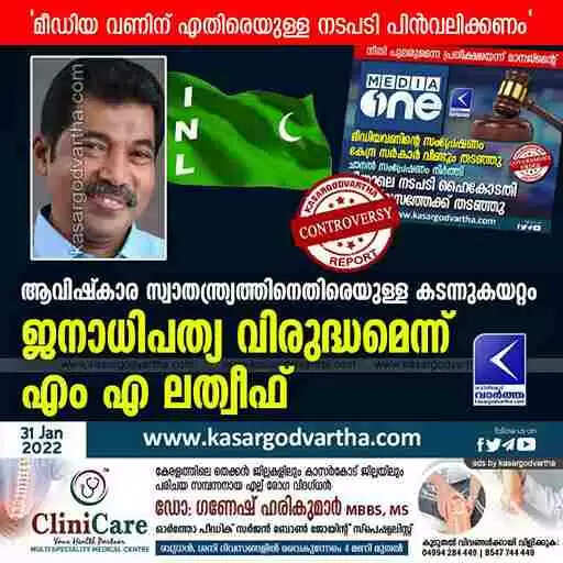 Keywords: Kasaragod, Kerala, News, Top-Headlines, Media worker, Government, INL, Secretary, Media ON e, Statement, M A Latheef demands for withdrawal of action against Media One.