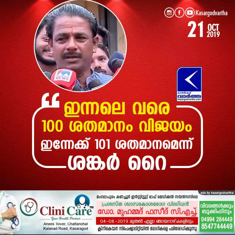 Keywords: Kasaragod, Kerala, news, by-election, Manjeshwaram, LDF, M Shankar Rai about by election result. < !- START disable copy paste -->