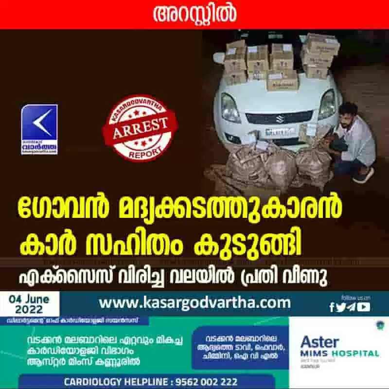 Arrested | ഗോവൻ മദ്യക്കടത്തുകാരൻ കാർ സഹിതം കുടുങ്ങി; എക്സൈസ് വിരിച്ച വലയിൽ പ്രതി വീണു