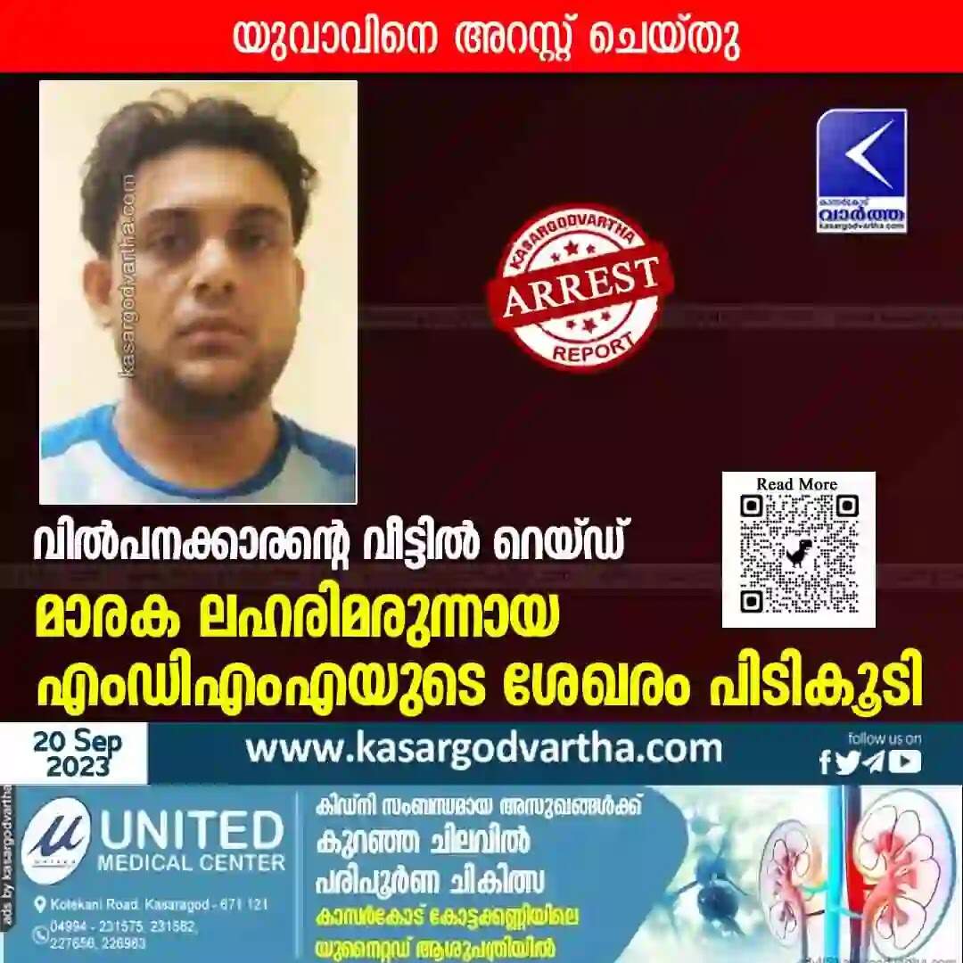 Keywords: Arrested, MDMA, Crime, Kerala News, Kasaragod News, Malayalam News, Crime News, Drugs, Man nabbed with MDMA.