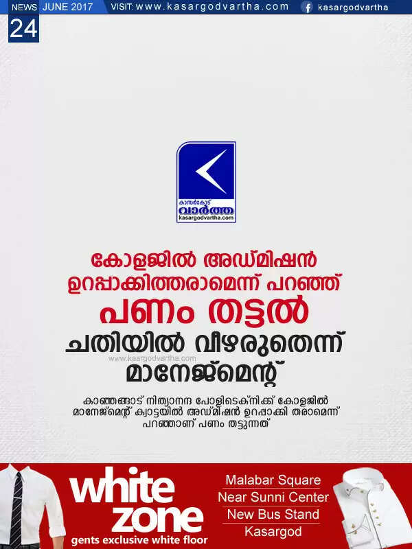 Keywords:  Kasaragod, Kerala, Kanhangad, College, news, Management warning about fake admission in college
