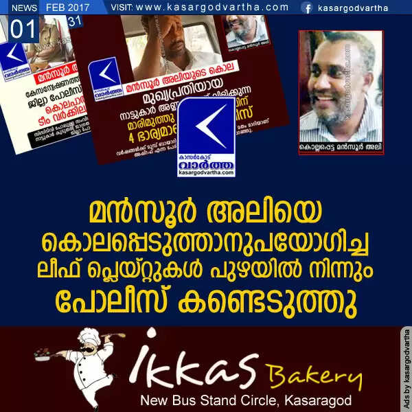 മന്‍സൂര്‍ അലിയെ കൊലപ്പെടുത്താനുപയോഗിച്ച ലീഫ് പ്ലെയ്റ്റുകള്‍ പുഴയില്‍ നിന്നും പോലീസ് കണ്ടെടുത്തു