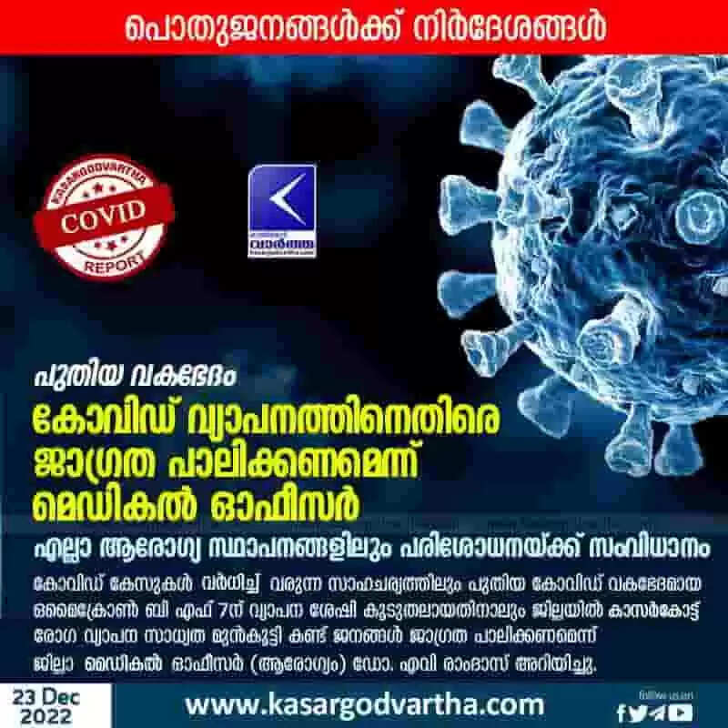 Keywords: Medical officer said that caution should be taken against spread of covid, Kerala, Kasaragod,news,Top-Headlines,COVID-19,ALERT,Health.