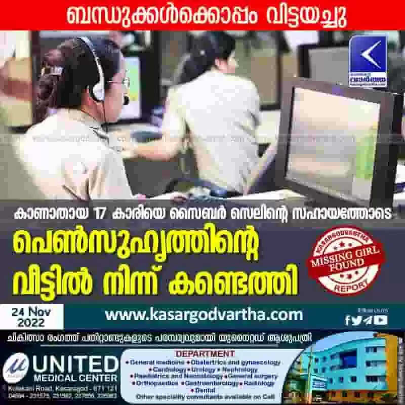Missing girl found | കാണാതായ 17 കാരിയെ സൈബര്‍ സെലിന്റെ സഹായത്തോടെ പെണ്‍സുഹൃത്തിന്റെ വീട്ടില്‍ നിന്ന് കണ്ടെത്തി