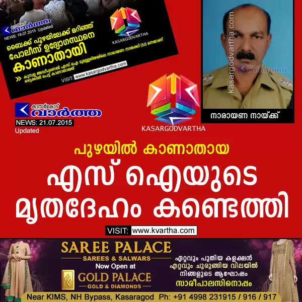 Keywords: Kasaragod, Kerala, Police, Bike, Missing Police officer's dead body found, Saree palace