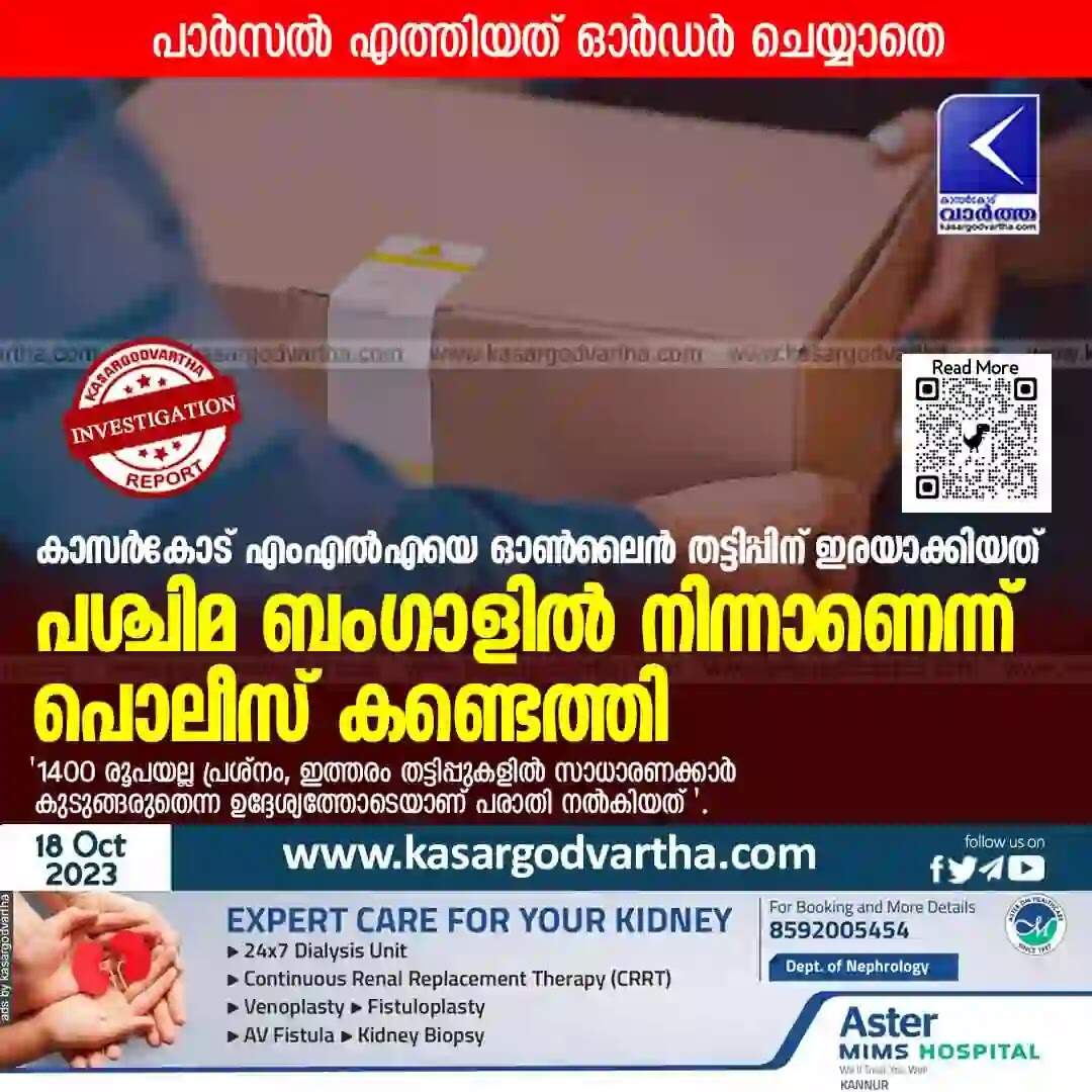 പിന്നീട് എംഎല്‍എ വീട്ടില്‍ തിരിച്ചെത്തി തുറന്ന് നോക്കിയപ്പോഴാണ് തങ്ങള്‍ ആരും ഓര്‍ഡര്‍ ചെയ്യാത്ത, ഗുണ നിലവാരമില്ലാത്ത കിടക്ക വിരിയായിരുന്നു പാര്‍സലില്‍ ഉണ്ടായിരുന്നതെന്ന് കണ്ടെത്തിയത്. കൊറിയര്‍ സര്‍വീസ് എന്ന വ്യാജേനയാണ് എംഎല്‍എയ്ക്ക് ഓര്‍ഡര്‍ ചെയ്യാത്ത പാര്‍സല്‍ എത്തിച്ച് നല്‍കിയത്. തട്ടിപ്പാണെന്ന് വ്യക്തമായതോടെയാണ് എംഎല്‍എ കാസര്‍കോട് സൈബര്‍ സെല്‍ അധികൃതര്‍ക്ക് പരാതി നല്‍കിയത്.
