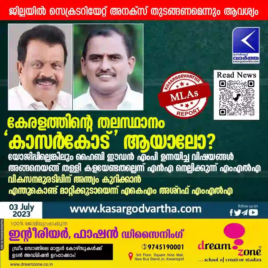 MLAs | കേരളത്തിന്റെ തലസ്ഥാനം 'കാസർകോട്' ആയാലോ? യോജിപ്പില്ലെങ്കിലും ഹൈബി ഈഡൻ എംപി ഉന്നയിച്ച വിഷയങ്ങൾ അങ്ങനെയങ്ങ് തള്ളി കളയേണ്ടതല്ലെന്ന് എൻഎ നെല്ലിക്കുന്ന് എംഎൽഎ; വികസനമുരടിപ്പിന് അന്ത്യം കുറിക്കാൻ എന്തുകൊണ്ട് മാറ്റിക്കൂടായെന്ന് എകെഎം അശ്‌റഫ് എംഎൽഎ