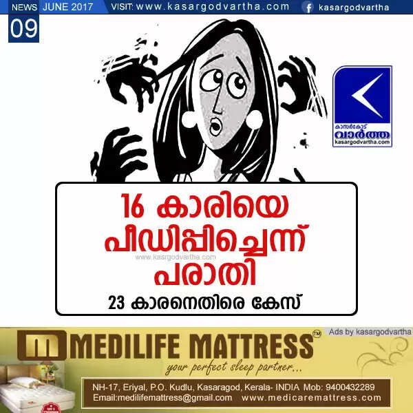 16 കാരിയെ പീഡിപ്പിച്ചെന്ന് പരാതി; 23 കാരനെതിരെ കേസ്