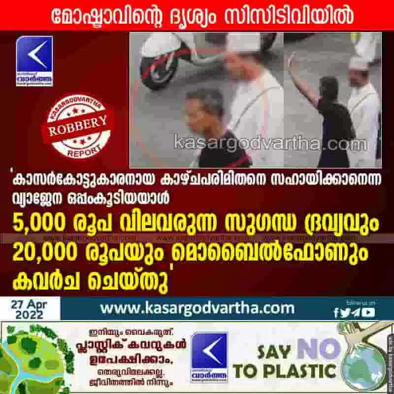 Stolen | 'കാസര്‍കോട്ടുകാരനായ കാഴ്ചപരിമിതനെ സഹായിക്കാനെന്ന വ്യാജേന ഒപ്പംകൂടിയയാള്‍ 5,000 രൂപ വിലവരുന്ന സുഗന്ധ ദ്രവ്യവും 20,000 രൂപയും മൊബൈല്‍ഫോണും കവര്‍ച ചെയ്തു'; മോഷ്ടാവിന്റെ ദൃശ്യം സിസിടിവിയില്‍