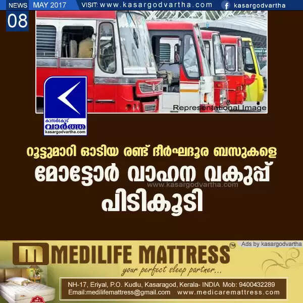 റൂട്ടുമാറി ഓടിയ രണ്ട് ദീര്ഘദൂര ബസുകളെ മോട്ടോര് വാഹന വകുപ്പ് പിടികൂടി