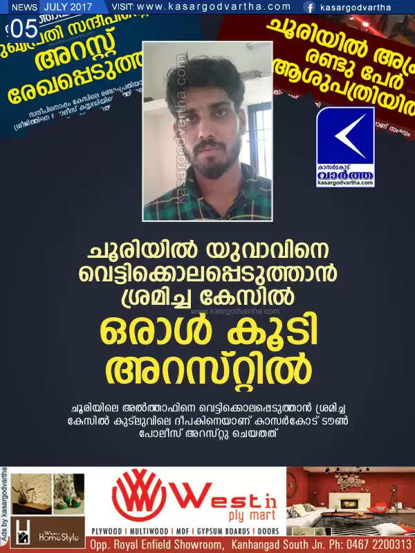 ചൂരിയില് യുവാവിനെ വെട്ടിക്കൊലപ്പെടുത്താന് ശ്രമിച്ച കേസില് ഒരാള് കൂടി അറസ്റ്റില്