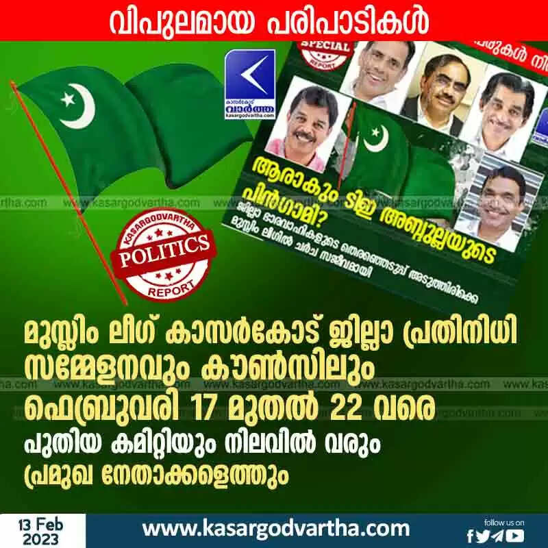 Muslim League | മുസ്ലിം ലീഗ് കാസർകോട് ജില്ലാ പ്രതിനിധി സമ്മേളനവും കൗൺസിലും ഫെബ്രുവരി 17 മുതൽ 22 വരെ; പുതിയ കമിറ്റിയും നിലവിൽ വരും; പ്രമുഖ നേതാക്കളെത്തും