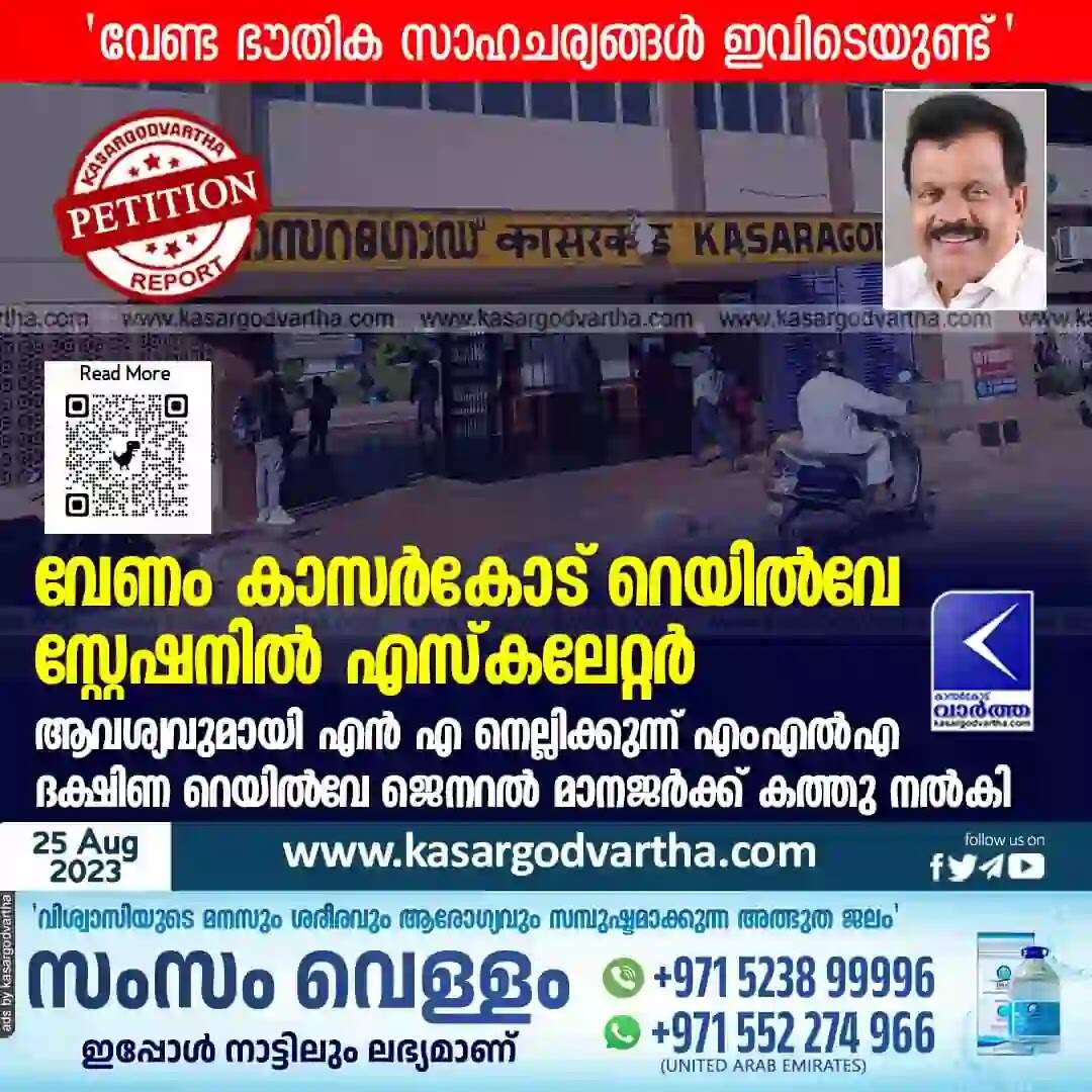 Escalator | വേണം കാസര്കോട് റെയില്വേ സ്റ്റേഷനില് എസ്കലേറ്റര്; ആവശ്യവുമായി എന് എ നെല്ലിക്കുന്ന് എംഎല്എ ദക്ഷിണ റെയില്വേ ജെനറല് മാനജര്ക്ക് കത്തുനല്കി