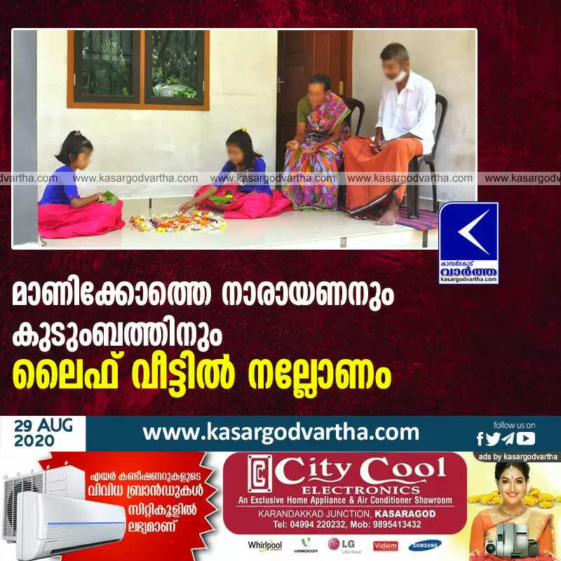 മാണിക്കോത്: (www.kasargodvartha.com 29.08.2020) നാരായണനും കുടുംബത്തിനും ഇക്കുറി ഓണം ലൈഫ് വീട്ടിലാണ്. ഇടക്ക് ഉണ്ടായ വാഹനാപകടത്തെ തുടര്ന്ന് നടുവിന് സാരമായി പരിക്കേറ്റ കൂലിപ്പണിക്കാനായ നാരായണന് പിന്നീട് ജോലി ചെയ്യാന് പറ്റിയില്ല. ഭാര്യ മാധവിയും പ്രായാധിക്യത്താല് വീട്ടില്ത്തന്നെയാണ്. മകന് ബിജുവും ഭാര്യ രേണുകയും മൂന്ന് മക്കളും കൂടി ചേര്ന്നതാണ് നാരായണന്റേയും മാധവിയുടേയും വീട്.