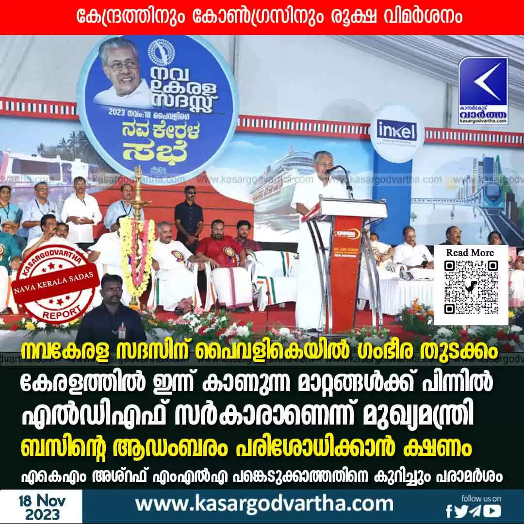 Nava Kerala Sadas | നവകേരള സദസിന് പൈവളികെയില് ഗംഭീര തുടക്കം; കേരളത്തിൽ ഇന്ന് കാണുന്ന മാറ്റങ്ങൾക്ക് പിന്നിൽ എൽഡിഎഫ് സർകാരാണെന്ന് മുഖ്യമന്ത്രി; ബസിന്റെ ആഡംബരം പരിശോധിക്കാൻ ക്ഷണം; എകെഎം അശ്റഫ് എംഎൽഎ പങ്കെടുക്കാത്തതിനെ കുറിച്ചും പരാമർശം