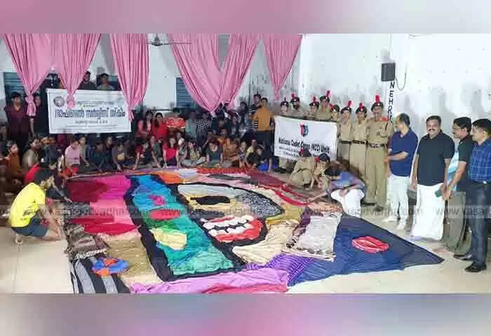 Nehru College | വിവിധ വര്ണങ്ങളിലുള്ള നൂറിലധികം ഷോളുകള് കൊണ്ട് ലഹരി വിരുദ്ധ ചിത്ര ശില്പമൊരുക്കി നെഹ്റു കോളജ്