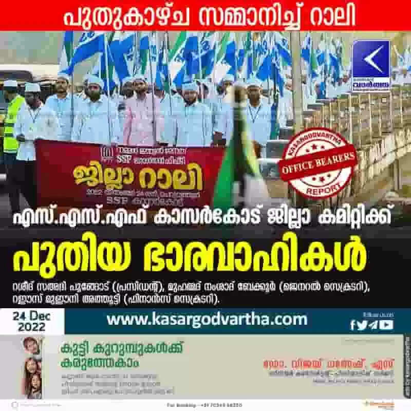 Office bearers | എസ് എസ് എഫ് കാസര്കോട് ജില്ലാ കമിറ്റിക്ക് പുതിയ ഭാരവാഹികള്; പുതുകാഴ്ച സമ്മാനിച്ച് റാലി