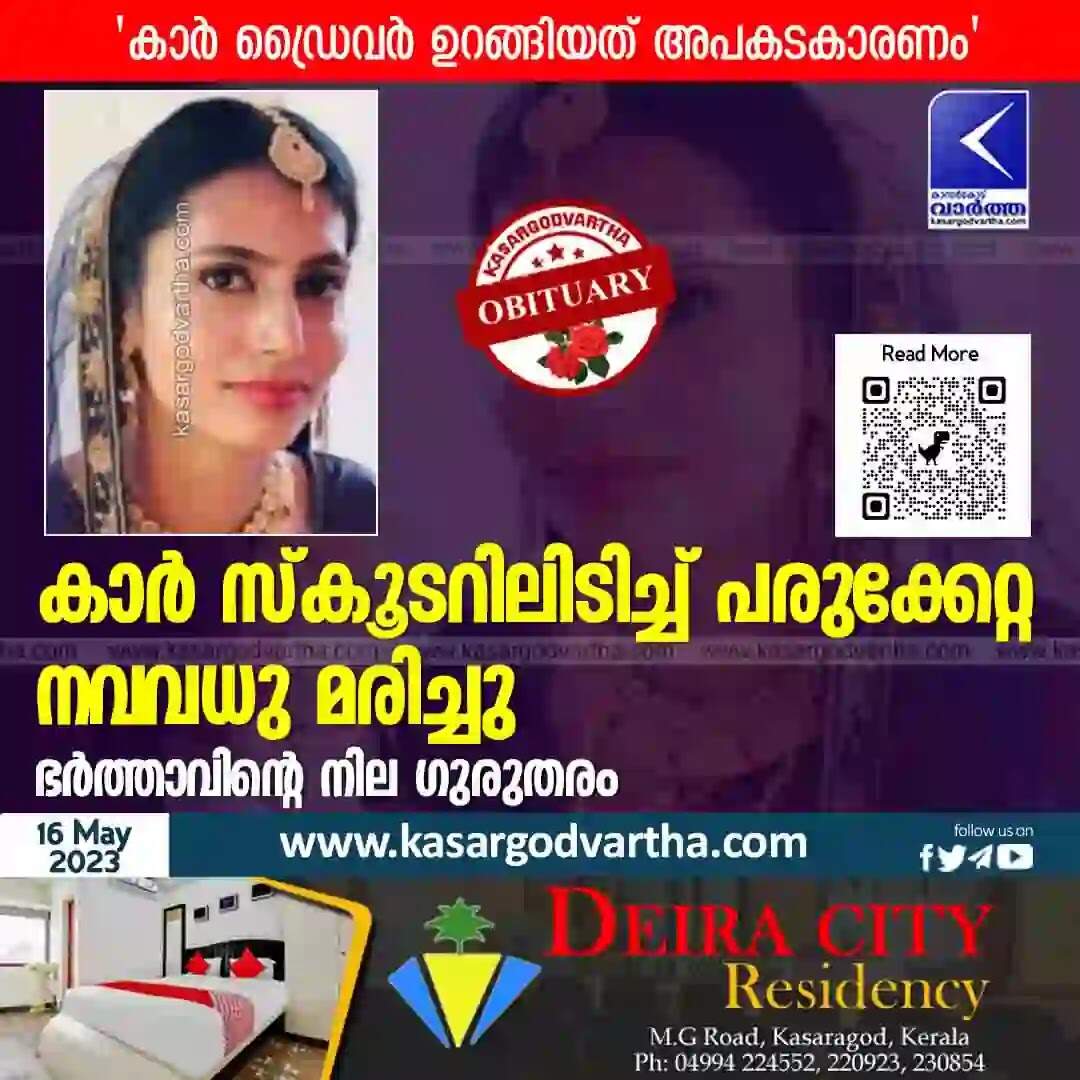 Keywords: Kerala News, Kasaragod News, Accident, Accidental Death, Accident News, Obituary, Malayalam News, Latest Malayalam News, Latest Kasaragod News, Latest Kerala News, Newlywed bride died after hit by car on scooter. < !- START disable copy paste -->