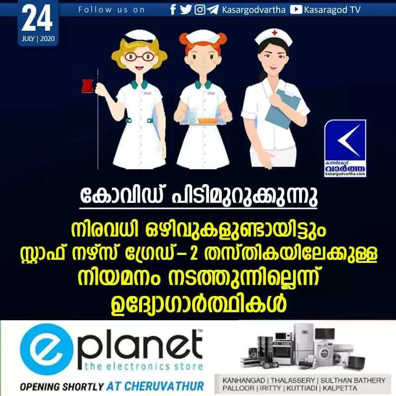 Keywords: Kasaragod, Kerala, News, Staff, Nurse, Vacancy, COVID-19, no staff nurse recruiting for the Grade-2 post it despite the many vacancies