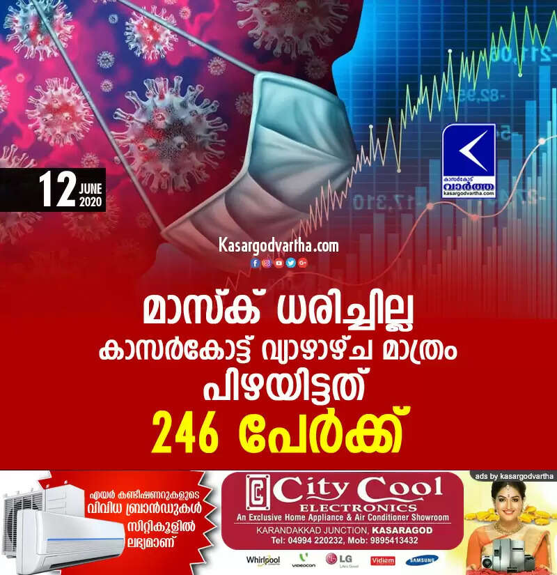 Keywords: kasaragod, Kerala, news, Mask, Fine, case, arrest, Vehicles, custody, Not wear mask; 246 fined
