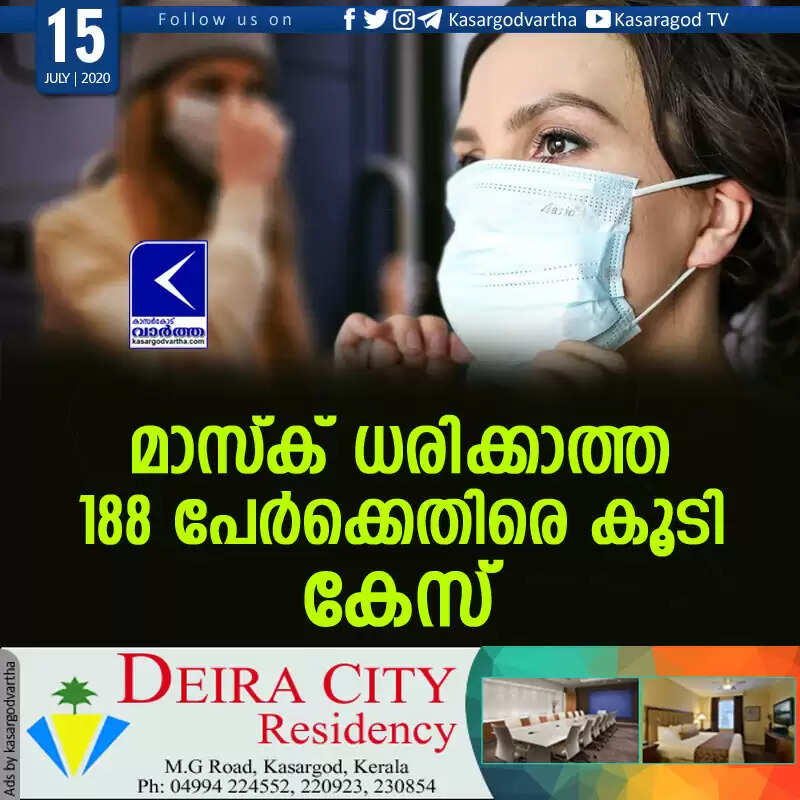മാസ്ക് ധരിക്കാത്ത 188 പേര്ക്കെതിരെ കൂടി കേസ്