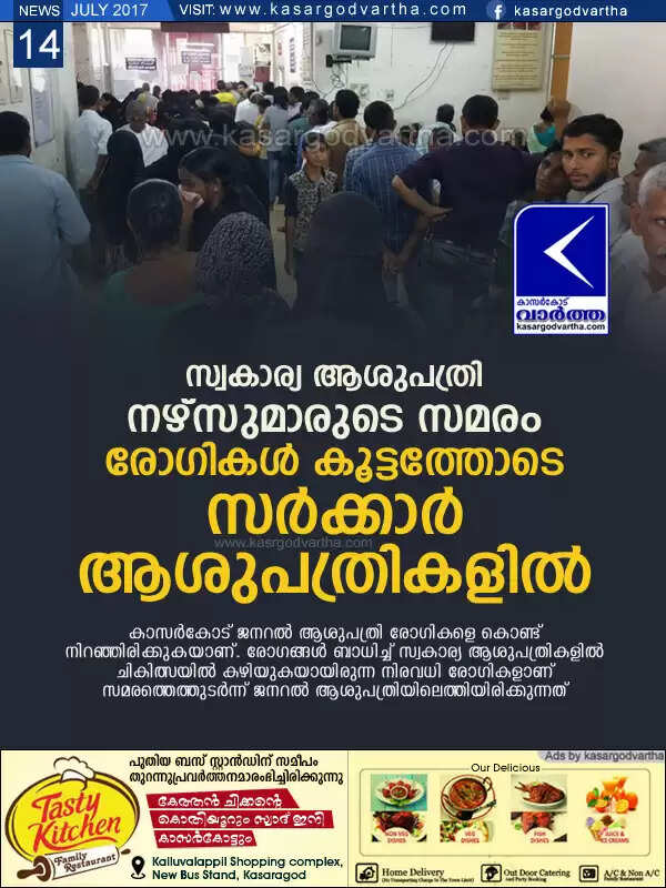 Keywords: Kasaragod, General-hospital, District, Kanhangad, Doctor, News, Kerala, Students, Nurses strike; Crowd in Govt. hospitals